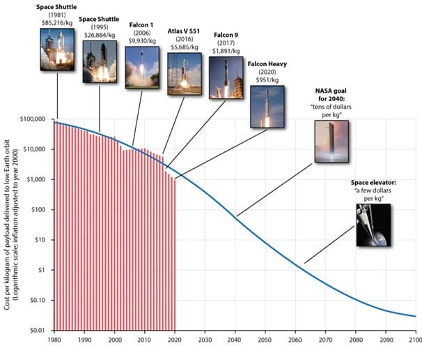The cost to place 1 kilogram (Kg) of mass into Low Earth Orbit LEO- SpaceX STARSHIP will achieve the NASA 2040 goal within a decade (NASA)