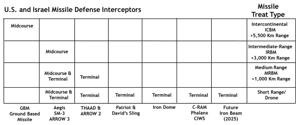 We have all seen and read about Israel’s layered missile defense systems, including Iron Dome, David’s Sling, and Arrow, augmented by US THAAD and Patriot batteries and US Navy Aegis warships equipped with SM-3 interceptors. The results have been impressive.