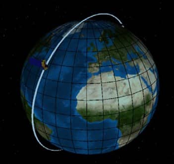 A single satellite is placed into orbit at a given angle crossing the Earth’s equator, called the angle of inclination of the orbit, as shown in the following figures. Orbit inclinations range from 0, an equatorial orbit. to 90 degrees 9a polar orbit. The inclination angle is measured by the angle of the satellite path as it crosses the equator.