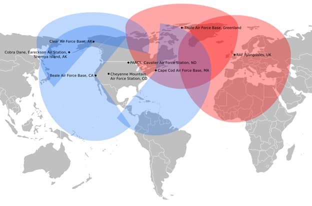 Coverage of Earth-based U.S. nuclear missile warning system radars (Wikicommons)
