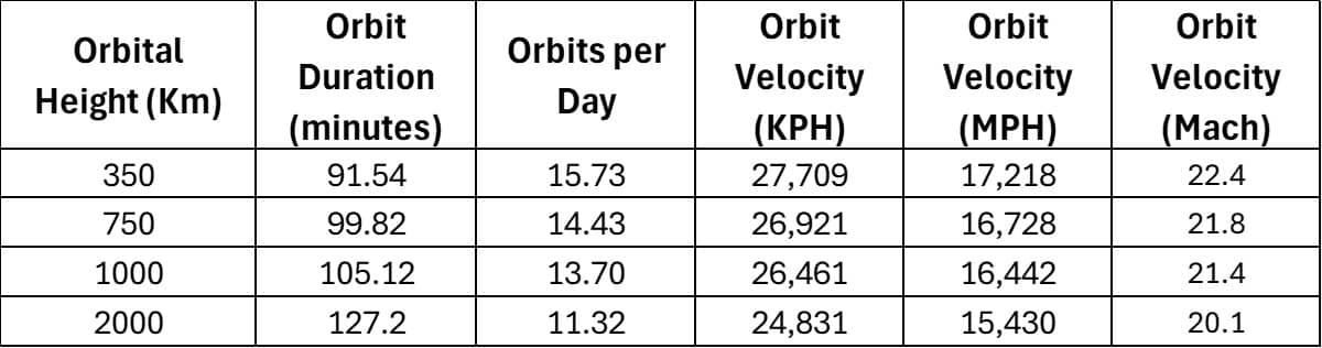 In our previous discussion, we introduced a table that provided orbit duration, number of orbits, around the earth in one day, and the orbital velocity for a given satellite orbit height. We can design a constellation of satellites ( an organized set of satellites) to provide specific coverage of areas of the Earth.