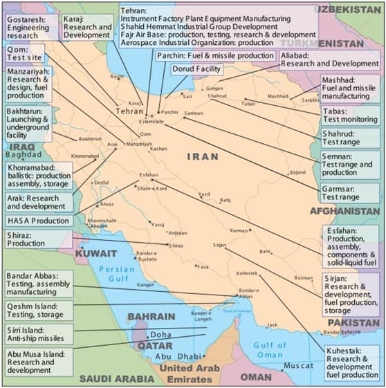 Map of Iran’s principal missile sites (CIA.gov)