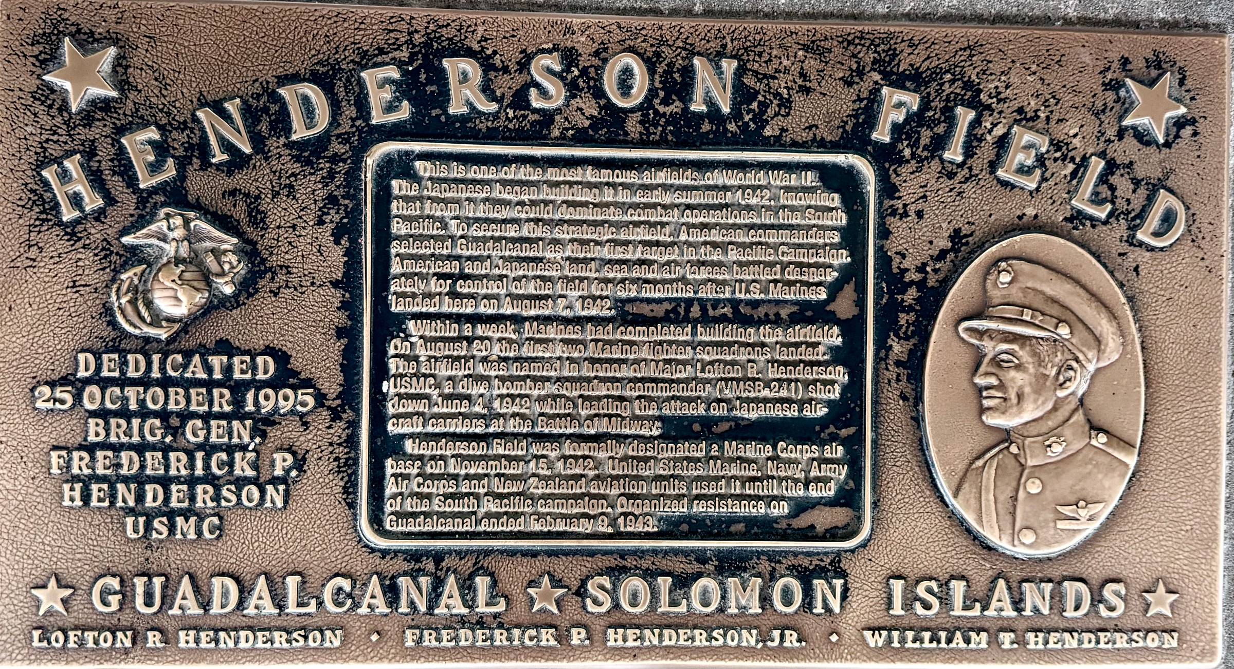 Henderson Field was the epicenter of the six months of cataclysmic fighting for control of Guadalcanal and the Solomon Islands. During the entire campaign, the airfield would be attacked almost daily from the air, from the ground, or from the sea by naval bombardment. The stories of the Marines who protected the field and Marine aviators of the “Cactus Air Force” who flew from it are the stuff of legends.