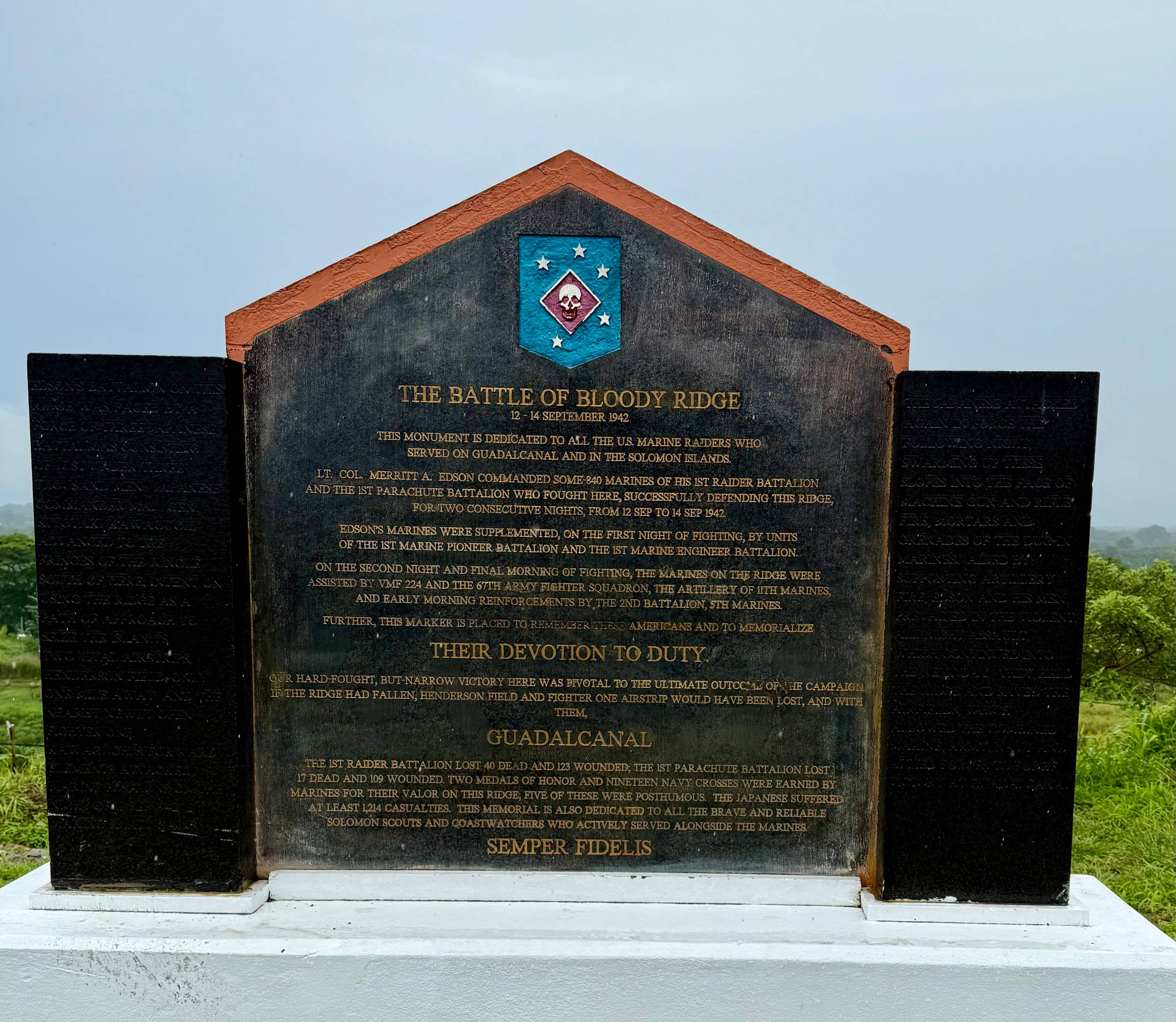 We leave Bloody Ridge, the tropical rain seeming to me as tears from heaven, weeping for the dead, and make our way to Henderson Field.
