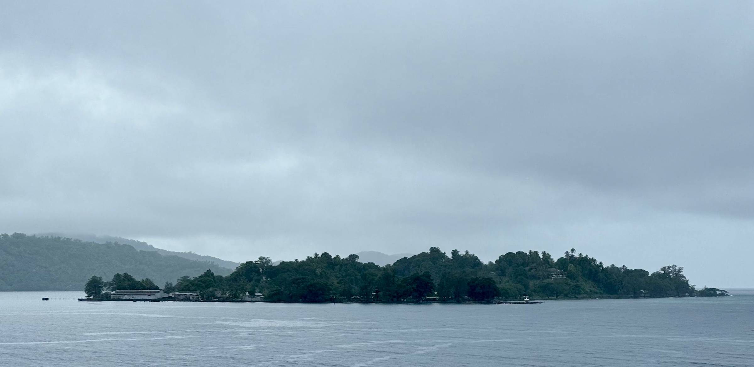 We continue our journey across the South Pacific. I started this week with a day of relaxation and exploration far from civilization or the echoes of the Pacific War raging some 83 years ago. Our ship, the Paul Guaguin, quietly cruised through Milne Bay overnight, as we retraced our route past Ito Island through the narrow Ito channel under the mist and light rain of the equatorial Pacific wet season. We lie off the shore of Samarai Island, the former state capital of Milne Bay Province.
