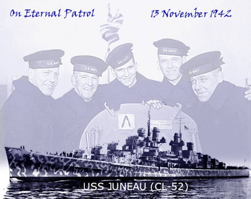 Cruiser USS Juneau (CL-52), whose tragic loss included the five Sullivan Brothers, “The Fighting Sullivans”