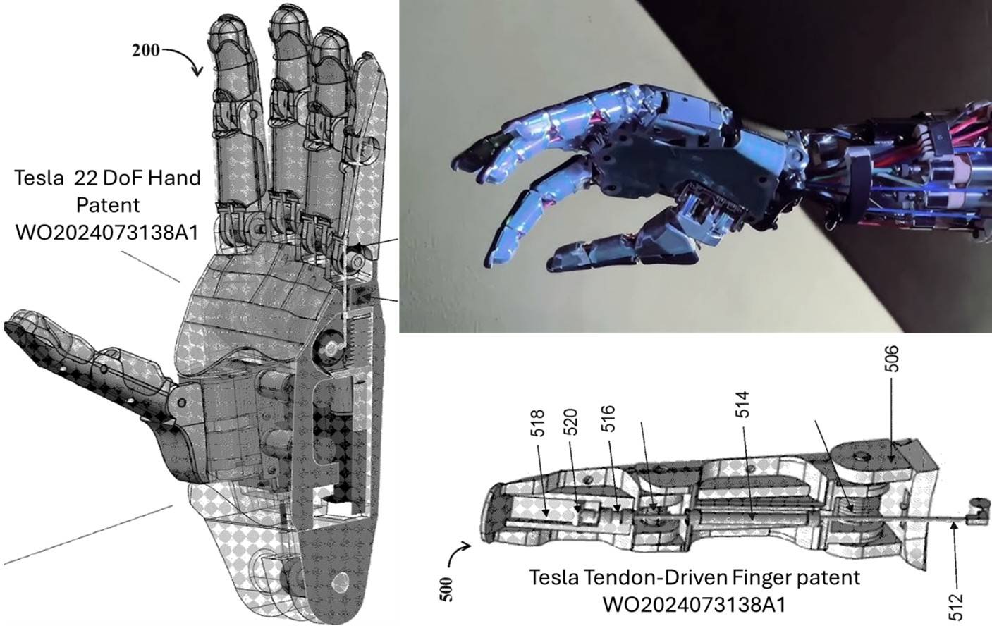 A highly detailed description of the Optimus Gen 3 Hand and finger design is available in Tesla’s hand and finger mechanism patent, WO2024073138A1, and in a preliminary patent, US20100259057A1 is also avaliable. It’s rather dry reading but very interesting if you are a wonky engineering type like me, or you're just interested.