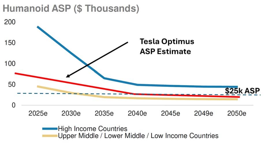 Humanoid Robot Average Sales Price Projection (Tesla, Morgan Stanley)